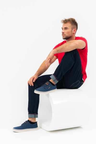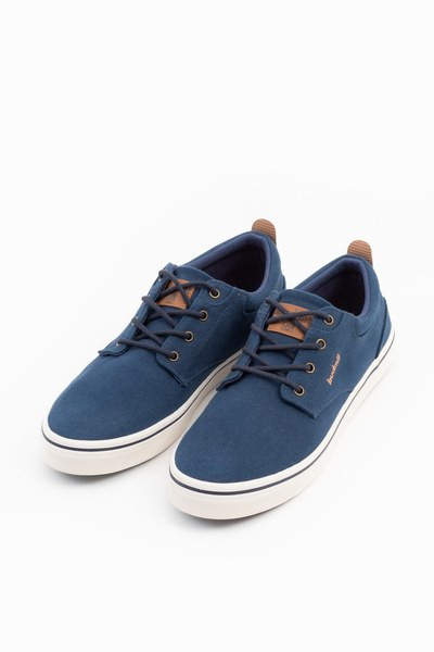 férfi vászoncipő - felsőrésze vászon - bélése textil - talpbélése memóriahabos textil - bőrcímkével és nyomott mintával díszítve