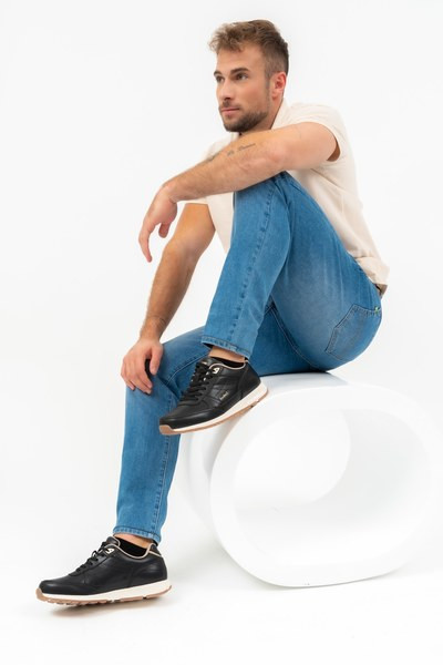 férfi sneaker - felsőrésze valódi bőr - bélése textil - talpbélése memóriahabos textil - nyomott mintával díszítve