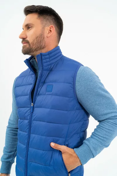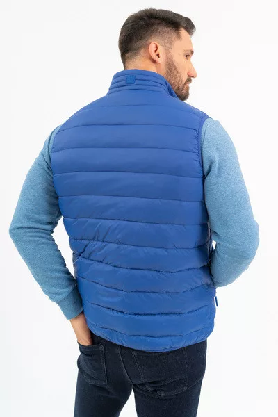 Férfi steppelt vékony mellény. Belső zsebek. Gumicímkékkel díszítve.
